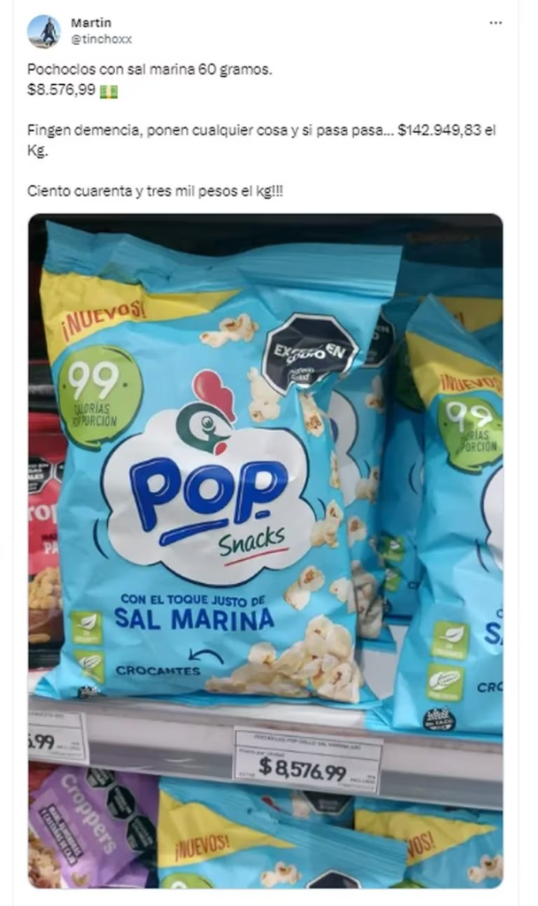 En su cuenta de X (exTwitter) un joven le sacó una foto a el precio de un paquete de pochoclos con sal marina y rápidamente se viralizó.