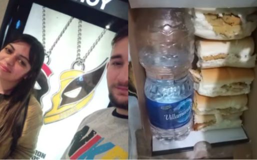 “Te hacés el que lo compraste ahí para que piensen que tenés plata y gastaste en zapatillas caras y es mentira, hay unos sándwich de milanesa ahí adentro”, concluyó el clip en el que fue mostrando como organizó la comida dentro de la caja, junto a una botella de agua, y luego se lo ve disfrutando de la preparación dentro de la sala.