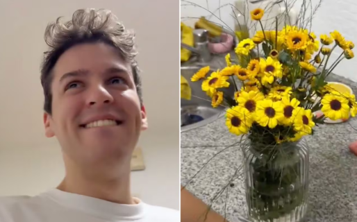 “Me vendieron flores de $150 mil en Palermo”, escribió en el video que publicó en redes. “Son muy lindas Juan Esteban, pero no puede ser”, le dijo la novia mientras las acomodaba en un florero. “¿Qué no puede ser?“, le preguntó él, “que las hayas pagado tan caras”, le respondió ella.