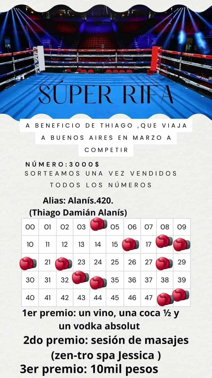 Quienes deseen colaborar o adquirir un número de la rifa pueden hacerlo comunicándose directamente con el deportista a través de sus redes sociales o mediante el alias habilitado para transferencias.