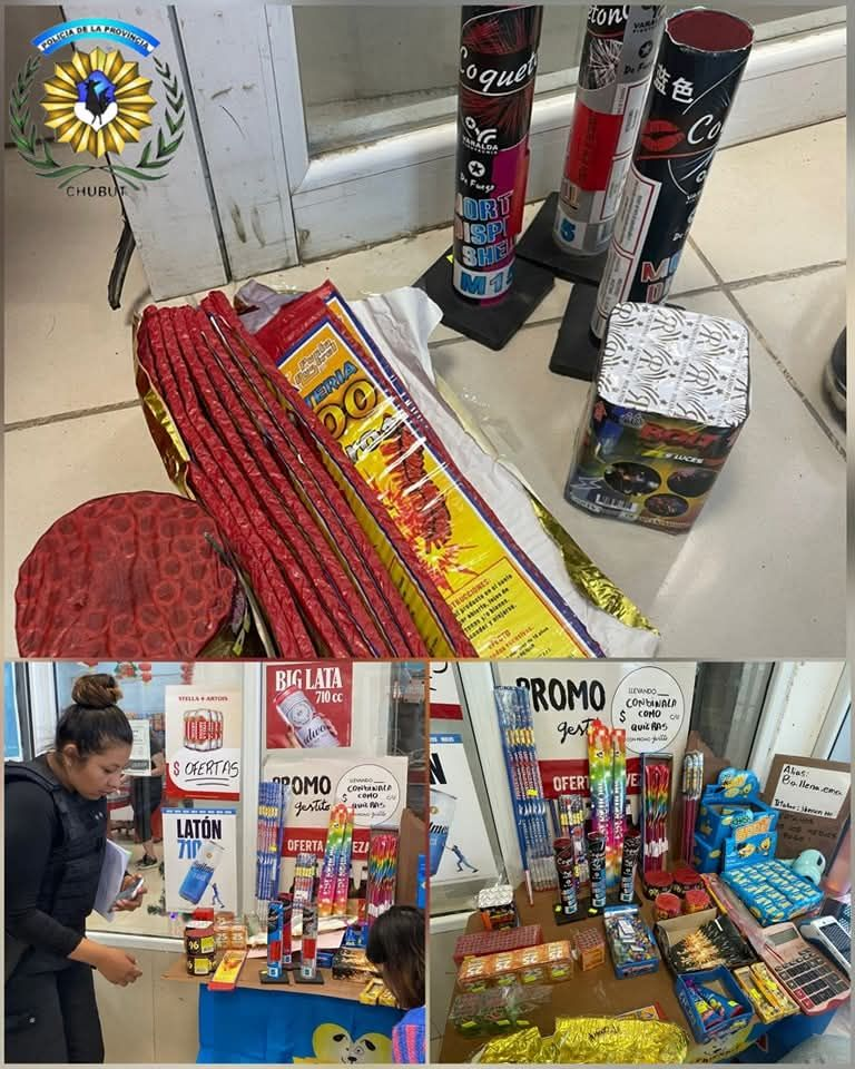 En el lugar, se constató de varios fuegos artificiales lumínicos y pirotecnia prohibida. En consecuencia, bajo la ordenanza 12.625/17, secuestraron tres morteros, una caja de show de luces, dos cajas de 96 perlas y once baterías de 100 tiros.
