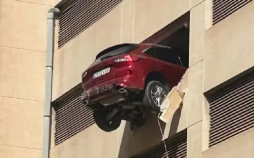El hecho ocurrió este jueves en Ibiza, España. La mujer había sacado la licencia de conducir hacía poco tiempo y todavía era denominada “principiante”. Su coche quedó suspendido en el aire en un tercer piso, después de hacer marcha atrás a toda velocidad y traspasar la pared.