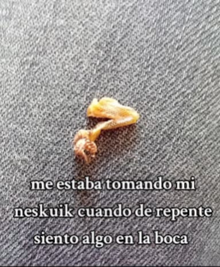 Una joven quiso prepararse una chocolatada para merendar pero todo terminó mal. Después de tomar un sorbo de la taza, sintió algo raro en su boca y cuando lo escupió se dio cuenta que había una pata de lagartija en su interior. El video se hizo viral en TikTok.