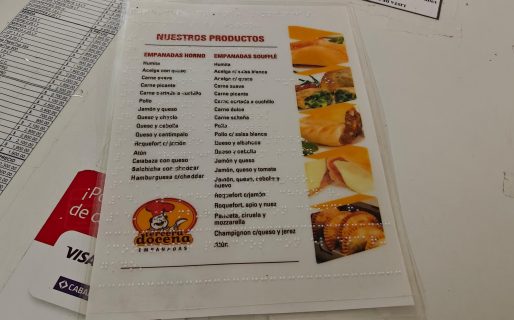 La marca imprimió su menú y lo colocó en el mostrador para que los clientes puedan ver qué tipos y variedades de empanadas venden.
