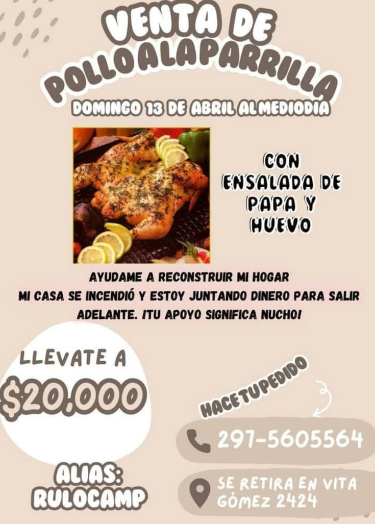 El próximo domingo 13 de abril, se llevará a cabo una venta de pollos con el objetivo de ayudar a una familia que perdió su hogar en un incendio devastador.