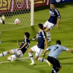 La salida de los equipos mostró una actitud totalmente opuesta entre los actantes, ya que la pasividad del elenco de Alejandro Sabella no coincidía para nada con la agresividad «celeste». De modo que en tan sólo seis minutos, los «charrúas» lograron ponerse en ventaja para soñar con la clasificación directa. Un error defensivo le permitió al «Cebolla» Rodríguez anotar el 1 a 0.