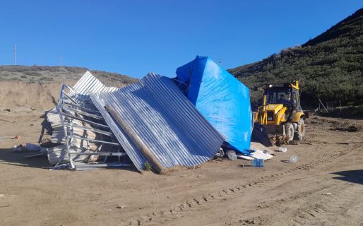 Al arribar al lugar, los efectivos policiales prestaron colaboración con el personal de Tierras de la Municipalidad para proceder al levantamiento de una vivienda precaria ubicada en el sector mencionado.