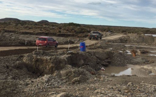 Tras el temporal de nieve y lluvia que sufrió la ciudad de Comodoro Rivadavia, muchas calles aún continúan con complicaciones para la transitividad de los transeúntes. En Loteo La Cantera, se puede observar la odisea para cruzar el puente de acceso al barrio.