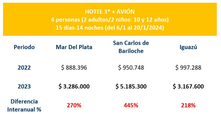 Bariloche es un ejemplo donde la alza responde a la fuerte demanda del turismo internacional sobre todo de Brasil. Sin embargo, los destinos internacionales se encarecieron hasta 579% anual producto de la devaluación del dólar oficial sumado a impuestos y otras percepciones.