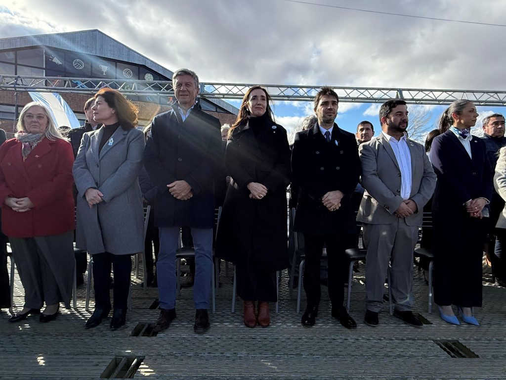 En el acto también participan la diputada Ana Clara Romero, el vicegobernador Gustavo Menna, el intendente de Comodoro Rivadavia, Othar Macharashvili, las senadoras Edith Terenzi y Andrea Cristina, y varios intendentes de diferentes localidades.