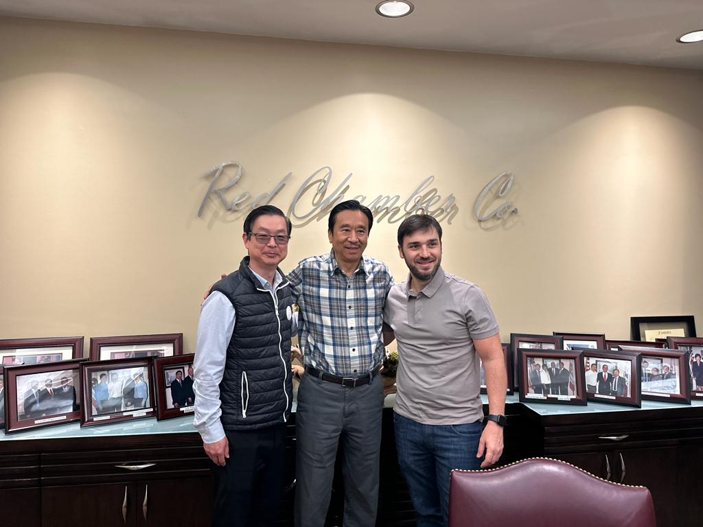 Torres en Los Ángeles con Ming Bi Kou, CEO de Red Chamber Co., y Mou.