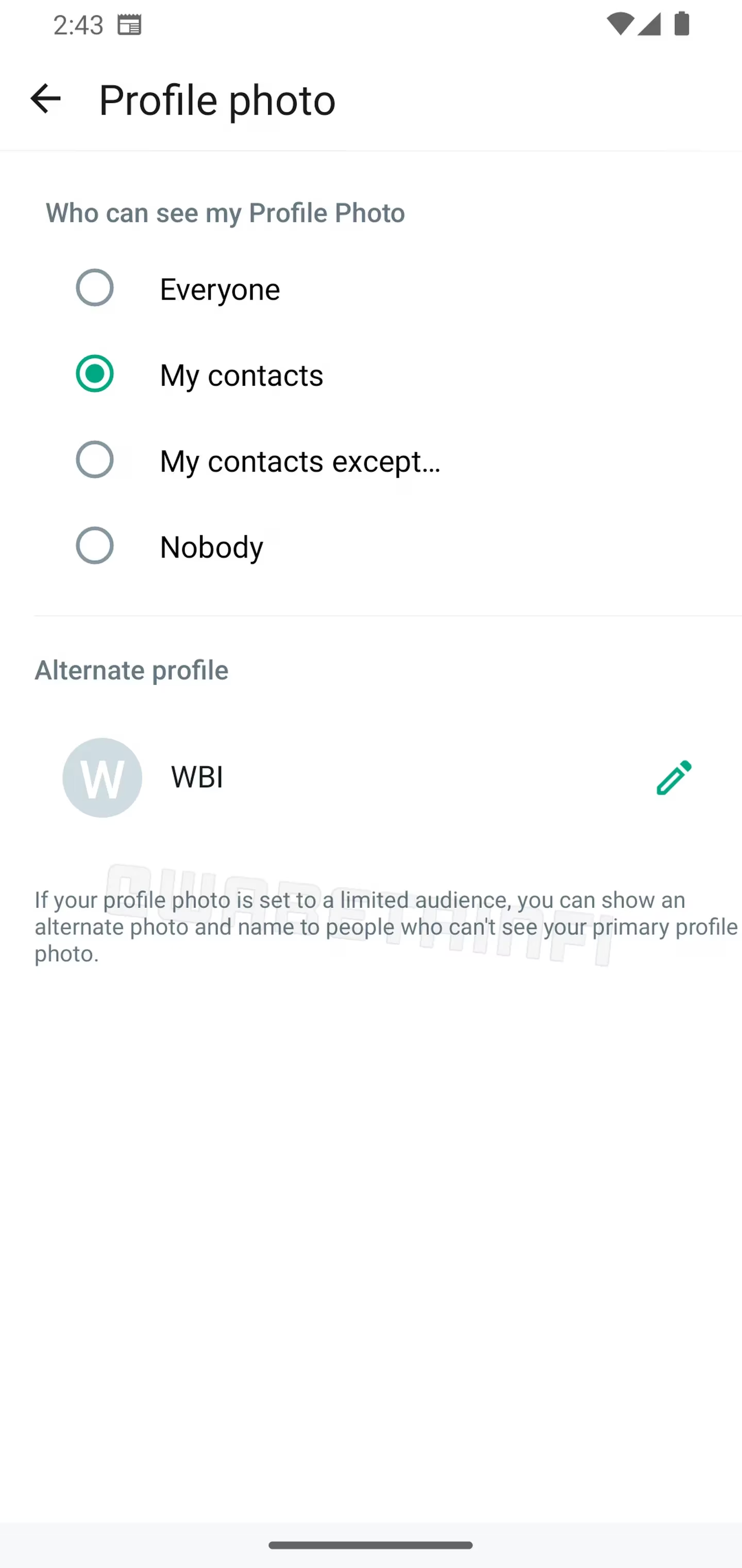 WhatsApp suma funciones para expandir el nivel de privacidad en la aplicación. En una versión de prueba del mensajero ya circula una opción que ofrece más control a la hora de mostrar o esconder la foto de perfil, escogiendo una alternativa. Como es habitual en estos casos, se espera que esta característica llegue a más usuarios luego de los testeos preliminares, indica TN.